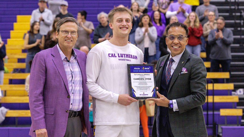 Cal Lutheran scholar-athlete Camden Hyde has been named to the Allstate NACDA Good Works Team (Winter). The junior men’s basketball player is being honored by the Allstate National Association of Collegiate Directors of Athletics (NACDA) for his leadership in community service, academics and athletics. Annually, 60 student-athletes throughout the country are recognized for the fall, winter and spring seasons.
